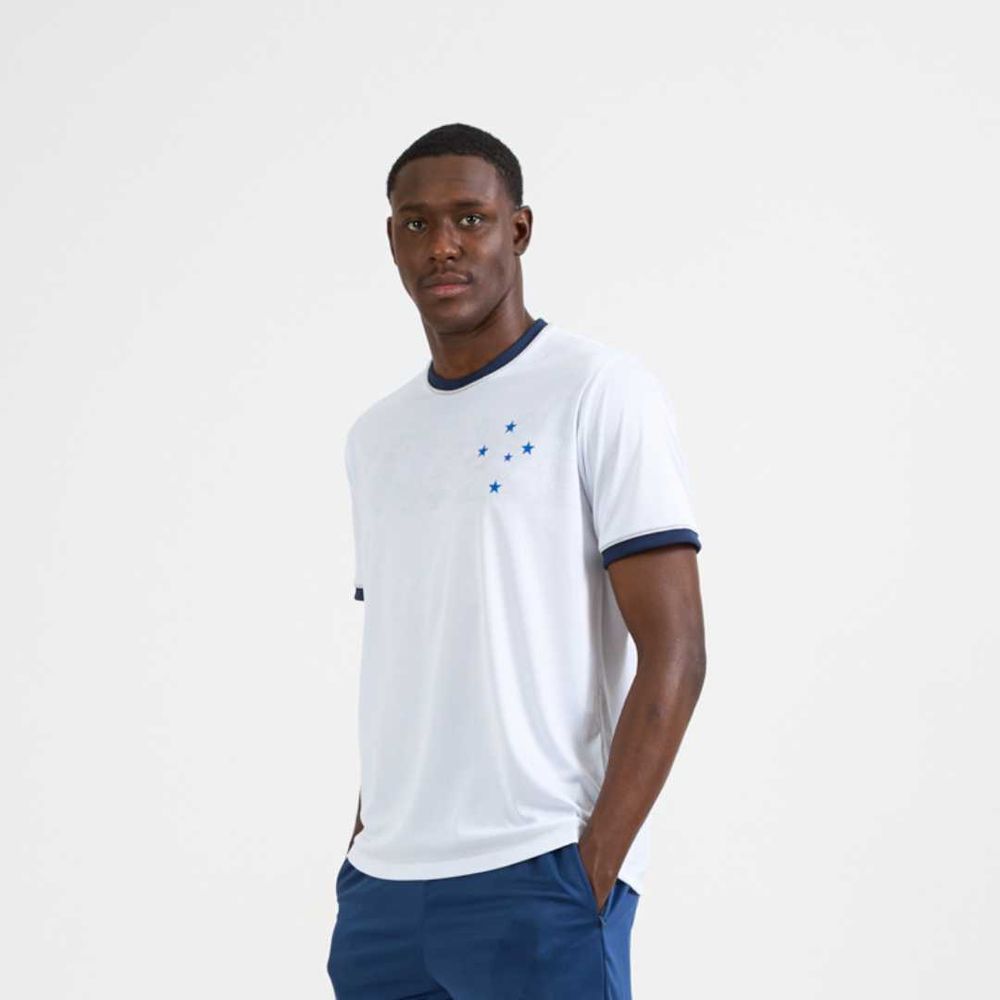 Com gola e punhos com vivos contrastantes no prata, a peça ganha um toque sofisticado e moderno. A estampa de constelação adiciona um detalhe único, representando a grandiosidade do Cruzeiro. Feita em tecido Dry Max, garante conforto, respirabilidade e leveza para o dia a dia ou para a torcida