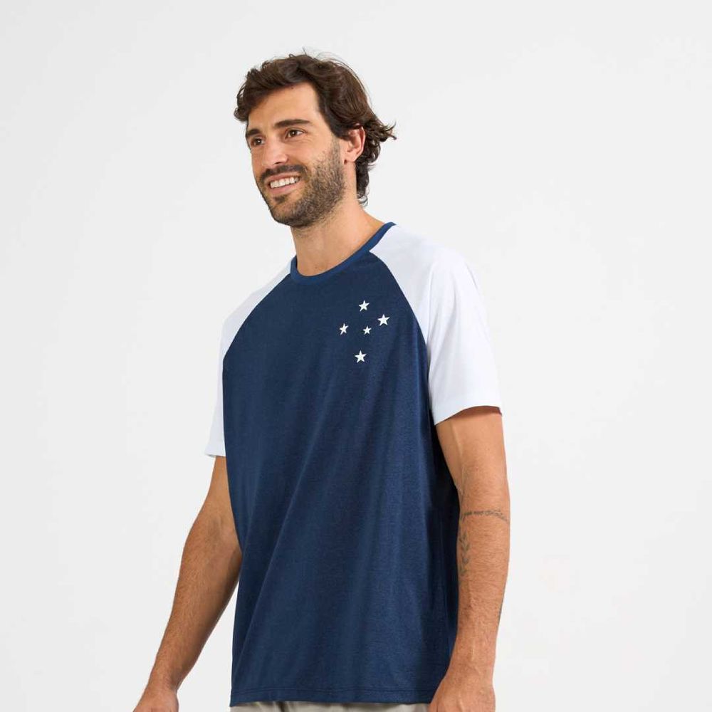 Com modelagem raglan e um mix de tecidos que proporciona liberdade de movimento, a peça ainda traz a estampa do escudo da constelação do Cruzeiro do Sul, simbolizando a tradição e o orgulho do clube. Feita em tecido Dry Mescla, garante respirabilidade e conforto para o dia a dia ou para a torcida.