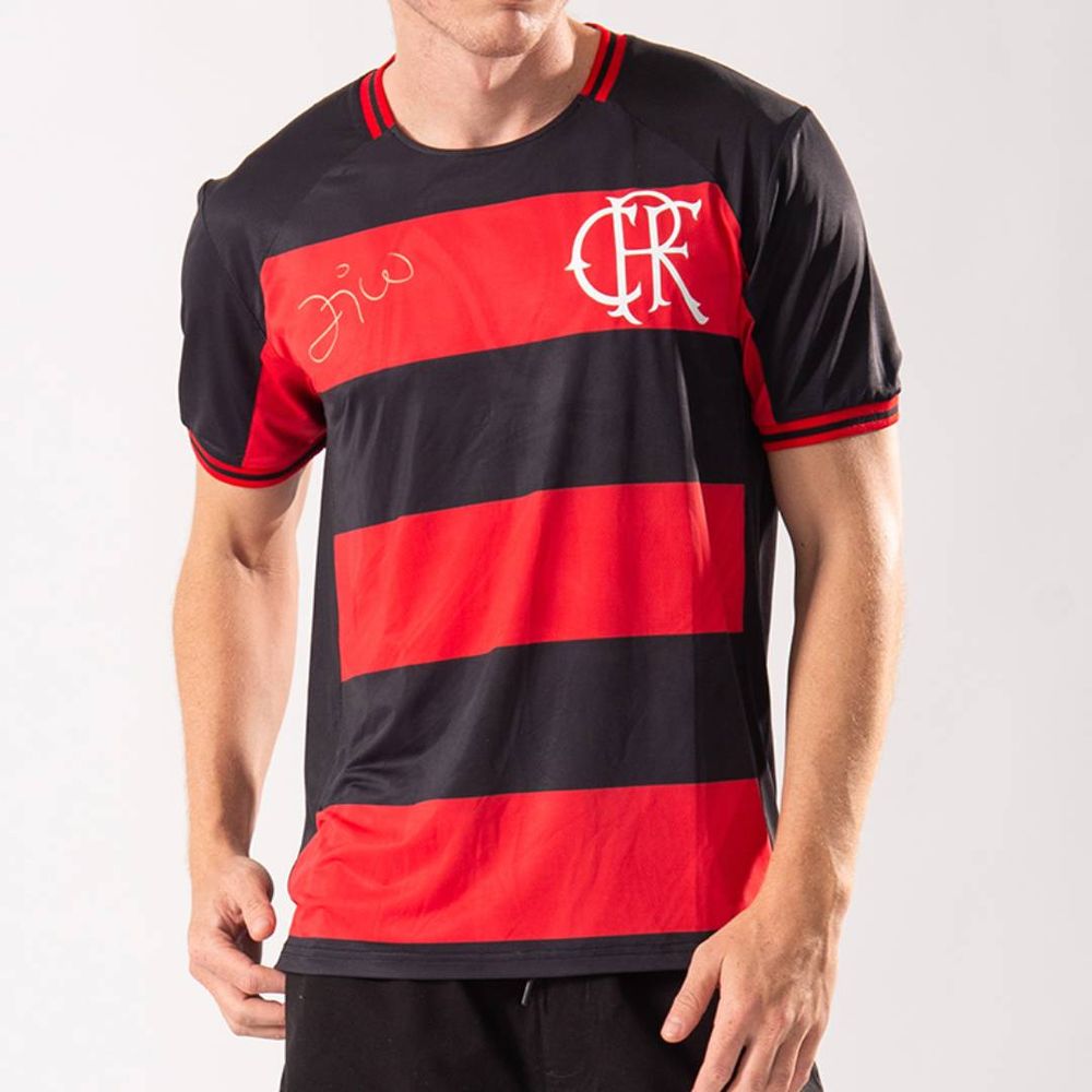 Na parte frontal, a camisa conta com uma assinatura estampada que faz referência ao eterno camisa 10 do Flamengo. As costas levam o número 10, destacando ainda mais o estilo retrô que celebra um dos maiores ídolos da história rubro-negra.