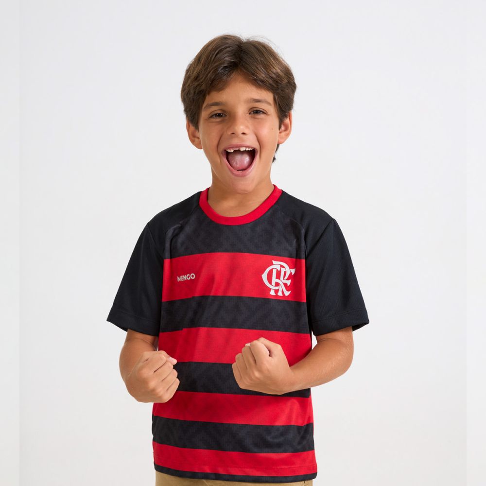 Com palas e mangas texturizadas, a peça traz o CRF estampado em prata e uma estampa de toque zero inspirada na textura de cestaria com listras irregulares, conferindo um visual único e moderno. Produzida em tecido muito leve, proporciona excelente caimento, alta respirabilidade e absorção do suor, garantindo conforto e pele seca mesmo durante atividades intensas.