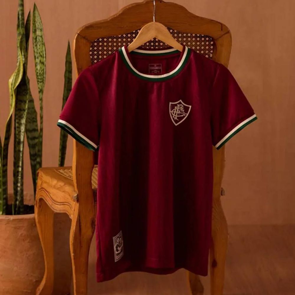 A camisa Recordar, da linha Consciência Negra, resgata esse legado e ganha ainda mais significado com a estampa da Espada de São Jorge — símbolo de proteção, coragem e resistência — além da gola e da pala nas cores do Fluminense.