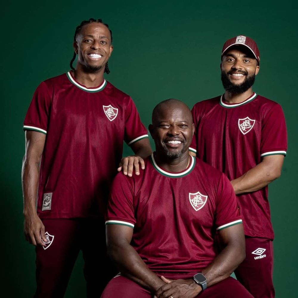 A camisa Recordar, da linha Consciência Negra, resgata esse legado e ganha ainda mais significado com a estampa da Espada de São Jorge — símbolo de proteção, coragem e resistência — além da gola e da pala nas cores do Fluminense.