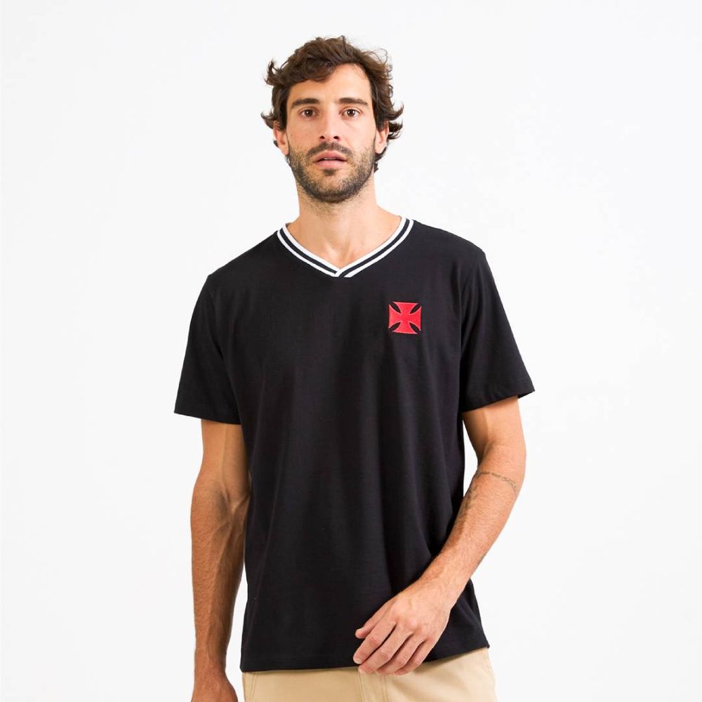 bordado da Cruz de Malta no peito, reforçando a identidade e a tradição do Vasco. Confeccionada em