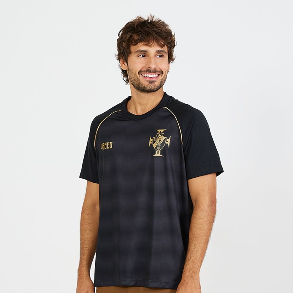 Camiseta raglan confeccionada em Dry Max 100% poliéster, tecido leve com excelente caimento, proporcionando conforto, alta respirabilidade e pele seca. O modelo traz detalhes dourados nas cavas e estampa do escudo e assinatura do clube no peito. Destaca-se pela estampa em toque zero inspirada no movimento das bandeiras da torcida, combinada com mix de tecidos que adiciona textura, dinamismo e identidade vascaína ao design.