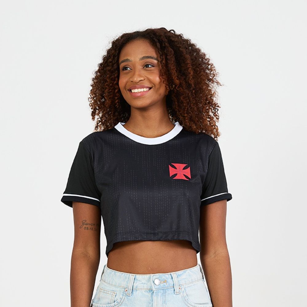 Cropped confeccionado em Dry Max 100% poliéster, tecido leve com excelente caimento, proporcionando conforto, alta respirabilidade e pele seca. O modelo traz acabamentos contrastantes na gola e nas mangas, com estampa do escudo no peito. Destaca-se pela estampa em toque zero que exibe o hino do clube em forma de ondas, unindo estilo e identidade vascaína.
