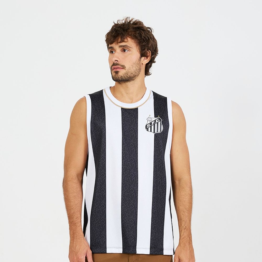 A Regata Presença do Santos traduz a tradição do Peixe em um design marcante. Com detalhe dourado na gola e a estampa do escudo no peito, a peça reforça a identidade alvinegra. O destaque fica por conta da estampa de toque zero que une as listras tradicionais do clube a raios estilizados, em uma homenagem vibrante aos craques que marcaram história. Produzida em tecido Dry Max, oferece leveza, respirabilidade e conforto, mantendo a pele seca em todos os momentos.
